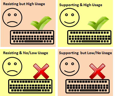 The point being that usage doesn’t tell the whole story. You have to address all four groups of users when measuring and implementing the adoption of system.