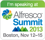 Of course, more importantly, I am going to be speaking at both the Barcelona and Boston editions of Summit. I’m actually very intrigued by the back-to-back nature of the Alfresco Summits. I am used to vendors having conferences in different geographies. Having them back-to-back is an interesting concept. Speaking at both, it means some concentrated traveling on my part, but I won’t be alone.
