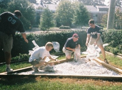 Spending an afternoon destroying a concrete slab, blazing a new hiking trail, or building a house can really bond a group together.